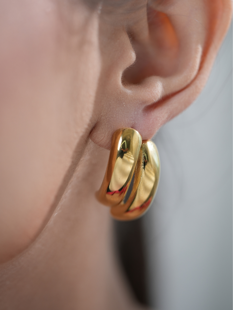 Crafted from 316L stainless steel and finished in a rich anti tarnish gold, these earrings are water-resistant, sweat-proof, and perfect for everyday edge. Lightweight yet striking, they’re your go-to for elevating even the most basic outfits.