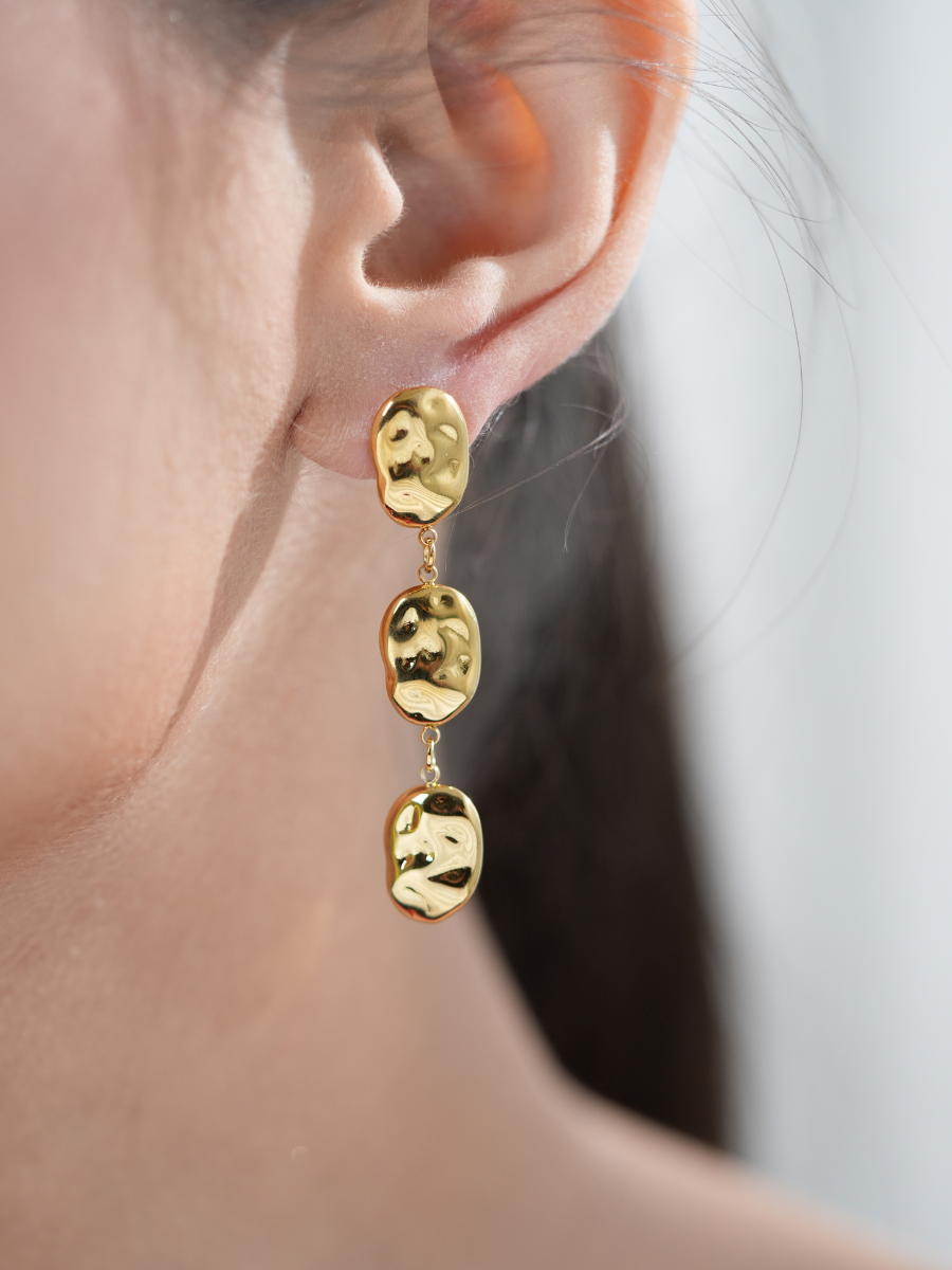 Drip in dreamy art. Dreamdrop features abstract gold face motifs that melt into each other like a surreal painting come to life. These anti-tarnish earrings bring together artistic expression and statement style in one fluid form. Lightweight and skin-friendly, they’re your go-to for adding an edge to both everyday and elevated looks.