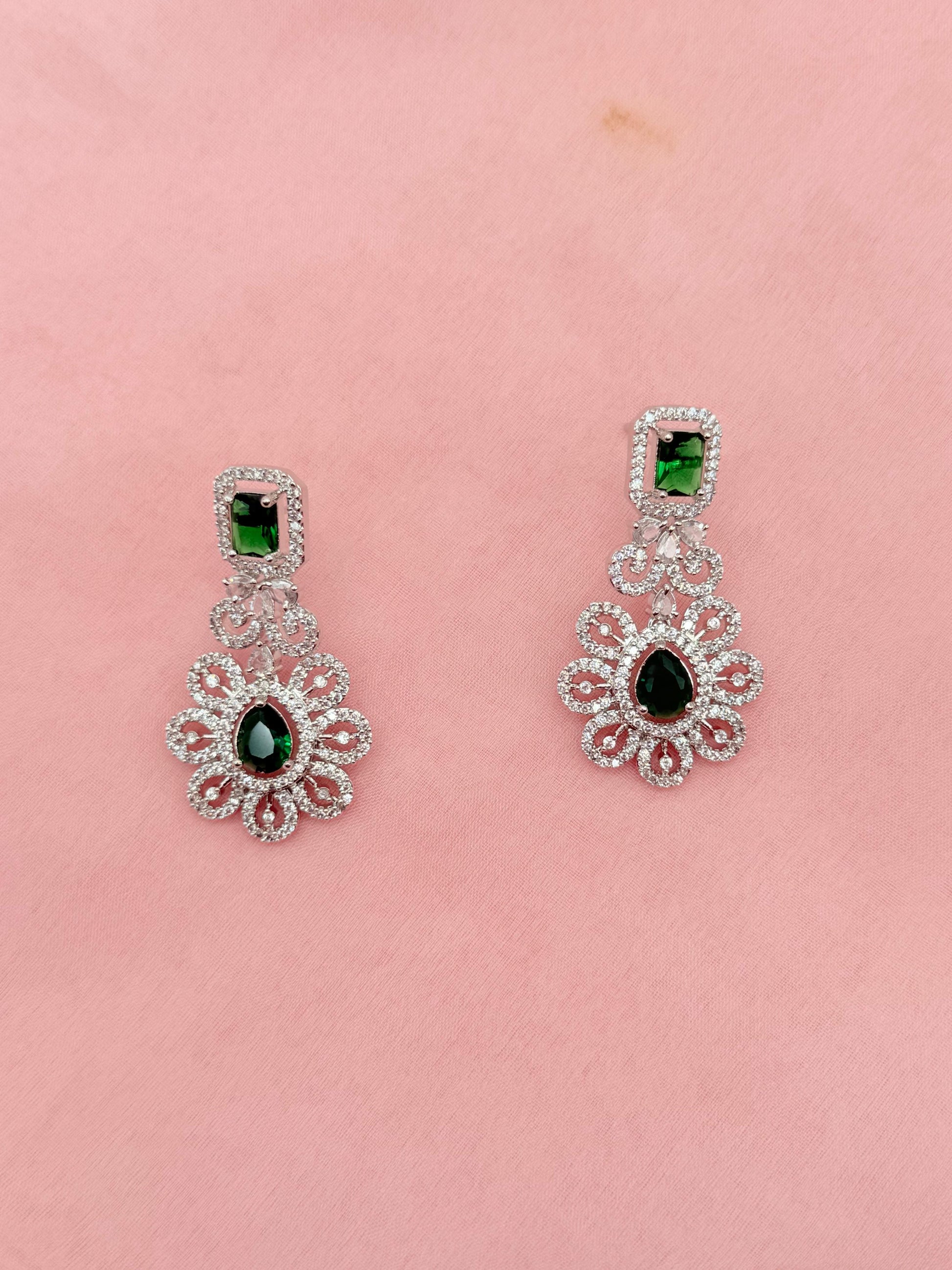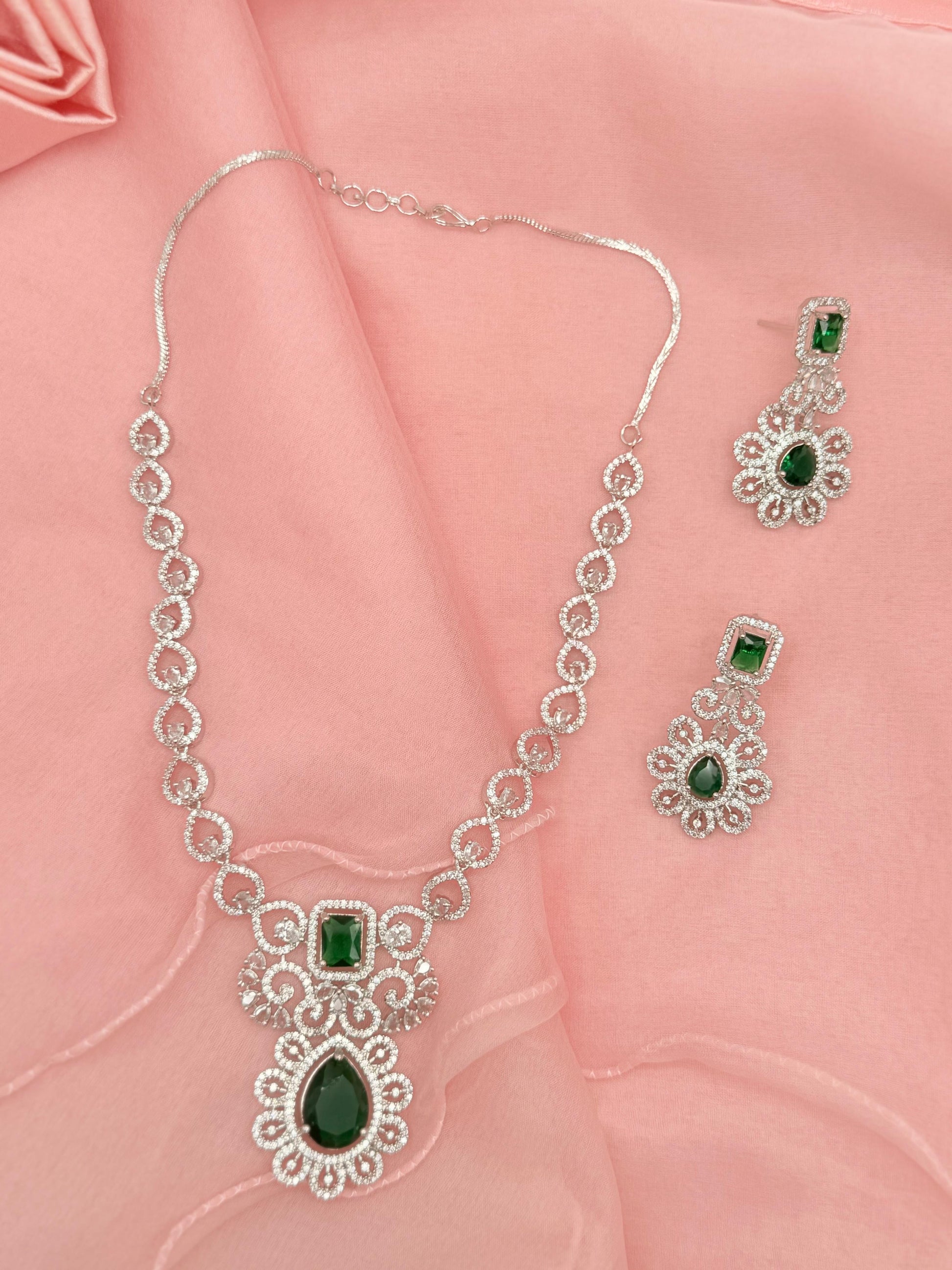 Florencia Emerald American Diamond Necklace Set
