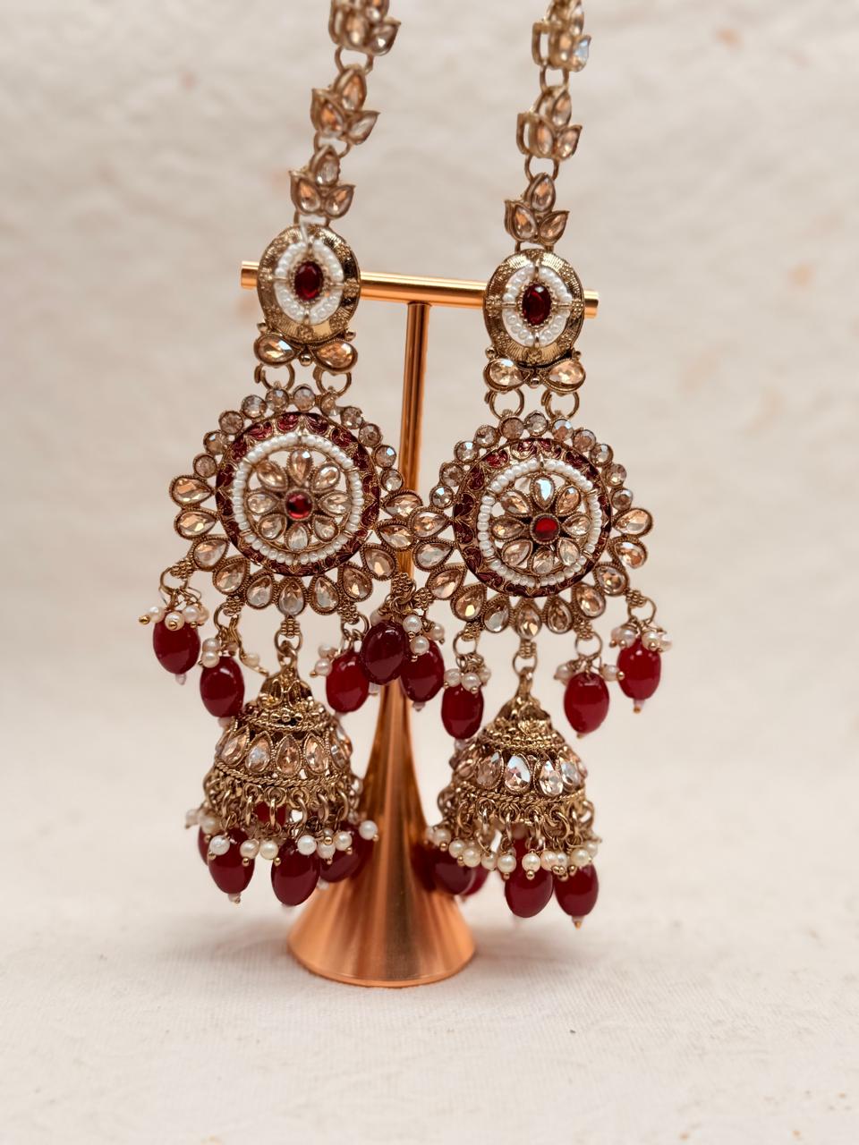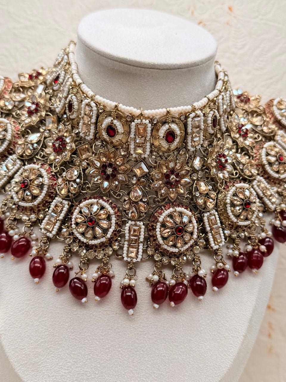 Step into a world where royal heritage meets poetic beauty with Gulmira — a bridal set that captures the soul of timeless elegance. Adorned in deep ruby tones and intricate Kundan artistry, this masterpiece blooms like a royal flower in full grace. Every detail whispers of love, legacy, and luxury — crafted for the bride who radiates power wrapped in passion.