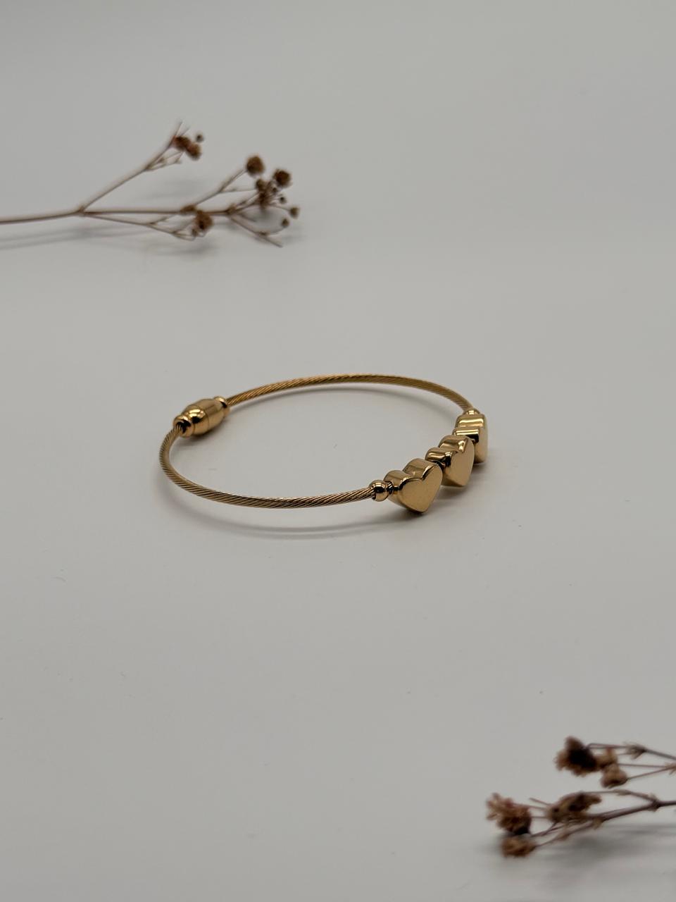 Wear love on your wrist with Heartline, a modern twist on classic romance. This gold-toned twisted cable bracelet is accented with a graceful trio of heart charms — two in glossy black and one in solid gold — symbolizing confidence, connection, and charm. Made from durable 316L stainless steel, it’s anti-tarnish, skin-safe, and stylishly understated, perfect for daily wear. Whether you’re gifting it or treating yourself, Heartline speaks straight to the heart.