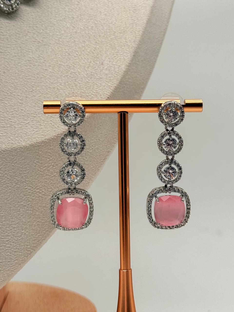 Delicate and dreamy, the Lustra Pastel Pink AD Set brings gentle femininity to statement wear. Blush-toned stones shimmer subtly against dazzling AD crystals, creating a look that’s perfect for light festivities and contemporary celebrations. This set is designed for those who love elegance with a modern, youthful touch.