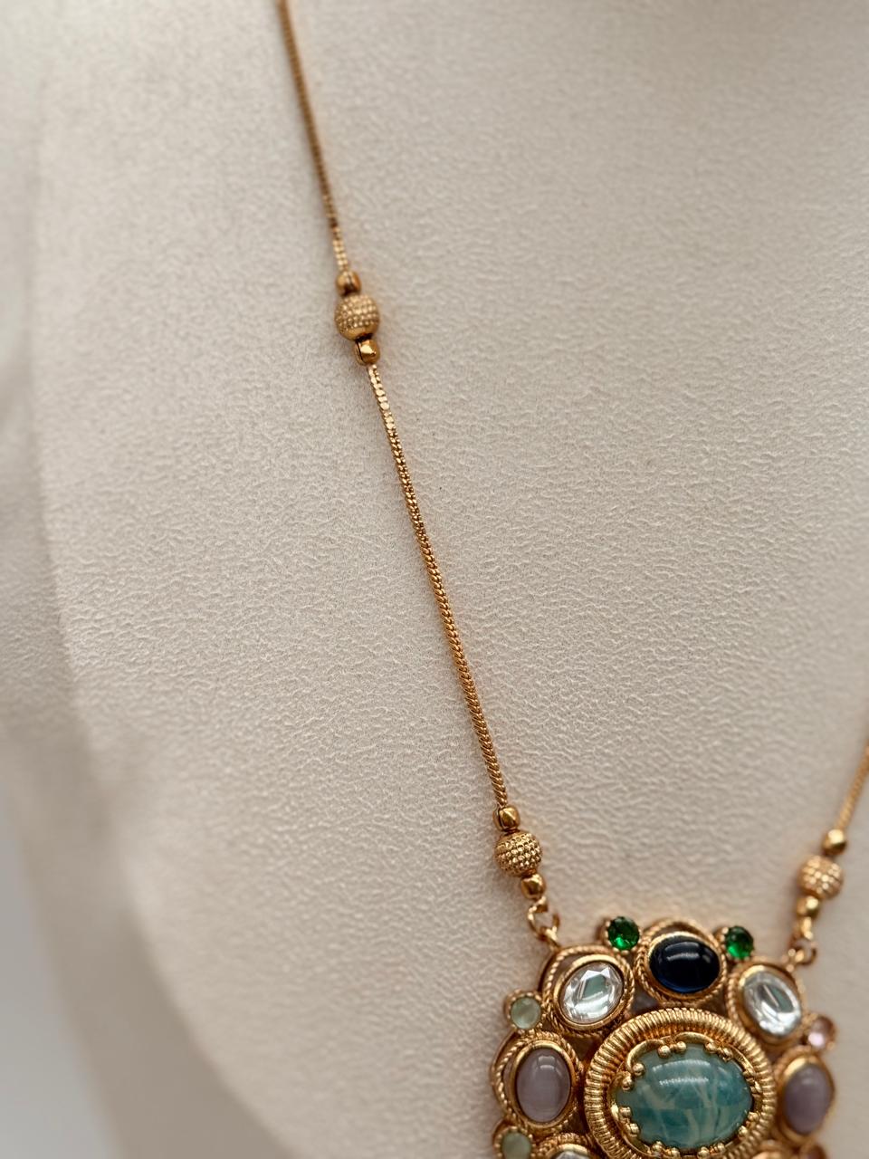 With intricate gold detailing and artisanal stone placements, this set exudes effortless luxury—perfect for women who appreciate colour, culture, and refined sophistication. It’s a versatile masterpiece that elevates ethnic, fusion, and festive looks with its serene yet powerful presence.