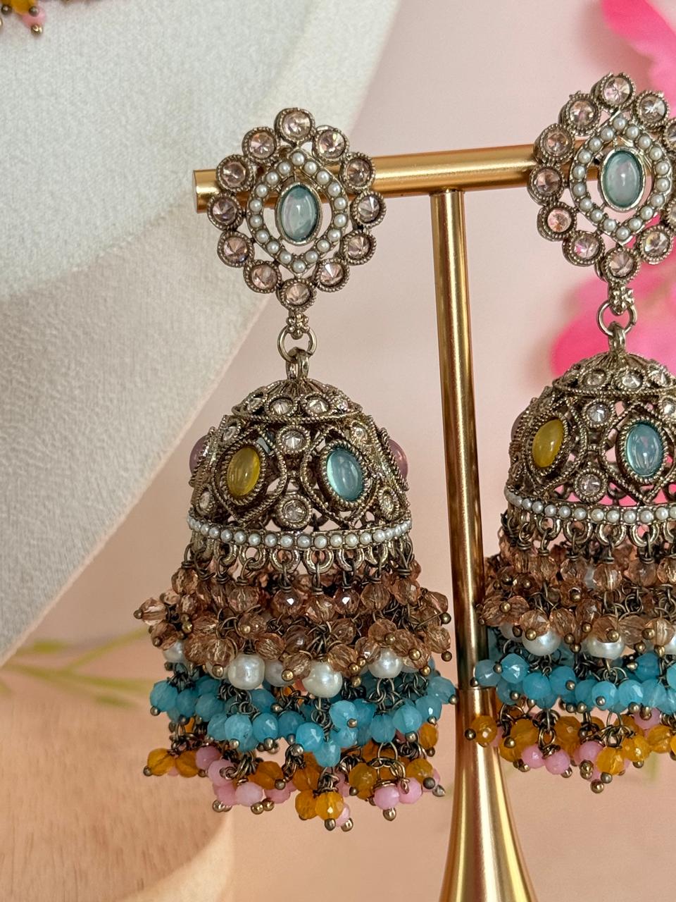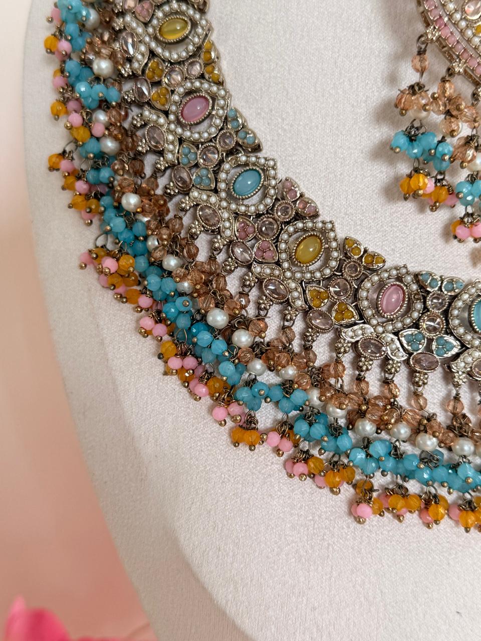 This set pairs beautifully with pastel-hued lehengas, sarees, and contemporary ethnic wear, making it a sublime choice for daytime celebrations or subtle bridal looks.