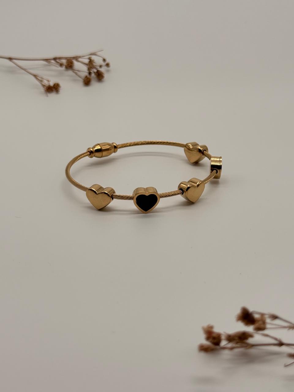 Wear love on your wrist with Heartline, a modern twist on classic romance. This gold-toned twisted cable bracelet is accented with a graceful trio of heart charms — two in glossy black and one in solid gold — symbolizing confidence, connection, and charm. Made from durable 316L stainless steel, it’s anti-tarnish, skin-safe, and stylishly understated, perfect for daily wear. Whether you’re gifting it or treating yourself, Heartline speaks straight to the heart.