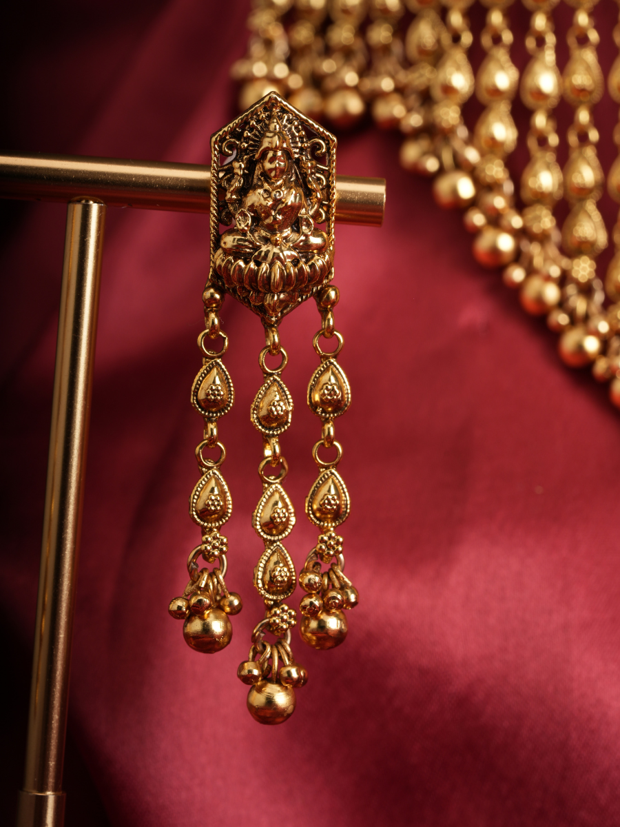 Golden beads cascade like the morning sun over an ancient shrine in Kanakratna — the embodiment of temple opulence.