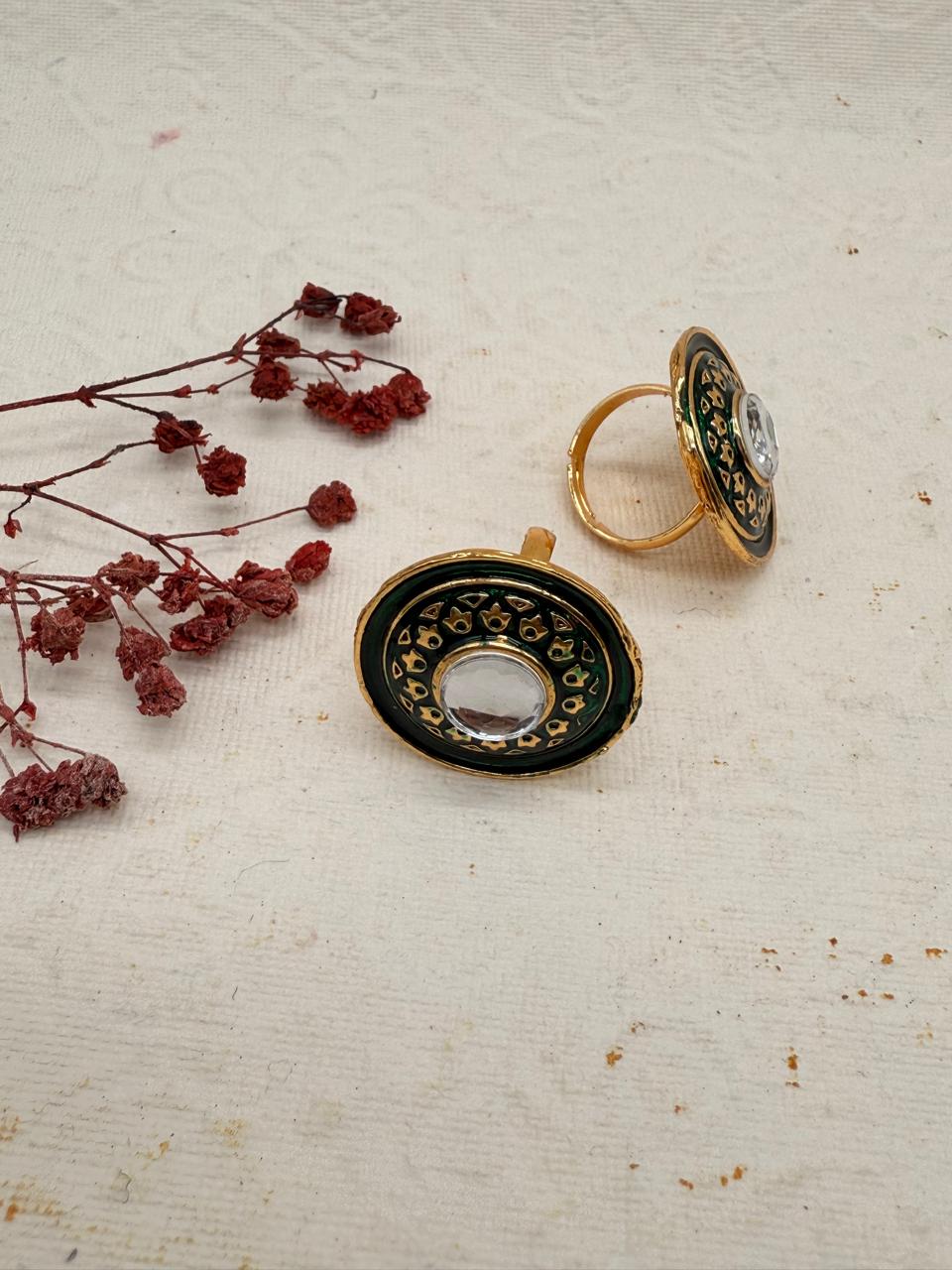 Complete with regal earrings, 2 adjustable statement ring, and a traditional maang tikka, this set transforms every bride into a vision of timeless grace and royal splendour.