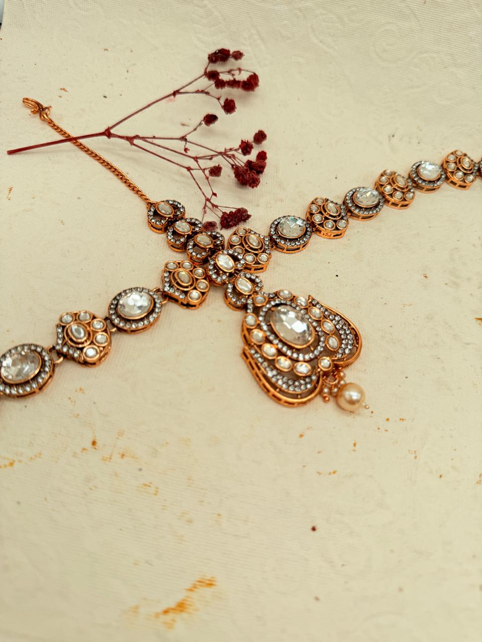 Ethereal and timeless, Rajratna Clear reflects the pure essence of royalty in its most elegant form. Crafted with pristine clear stones and intricate Kundan detailing, this masterpiece captures the untouched grace of regal heritage. Its neutral brilliance makes it a versatile treasure — perfect for every bride who desires to shine with effortless sophistication and royal poise.