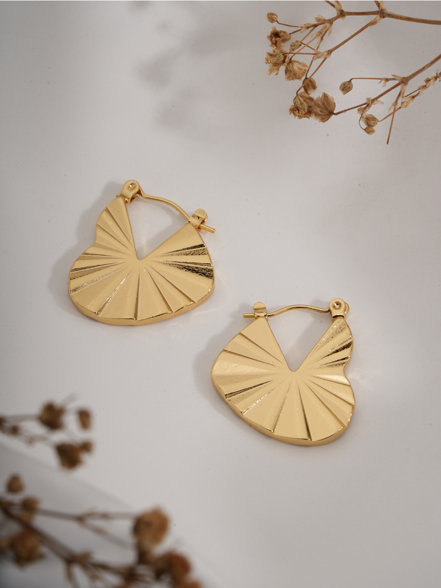 Crafted with love in 316L stainless steel and finished with anti tarnish gold plating, they’re light, durable, and hypoallergenic—your ears will thank you. The flared, fanned shape catches light with every turn, making it the ultimate day-to-night statement piece.