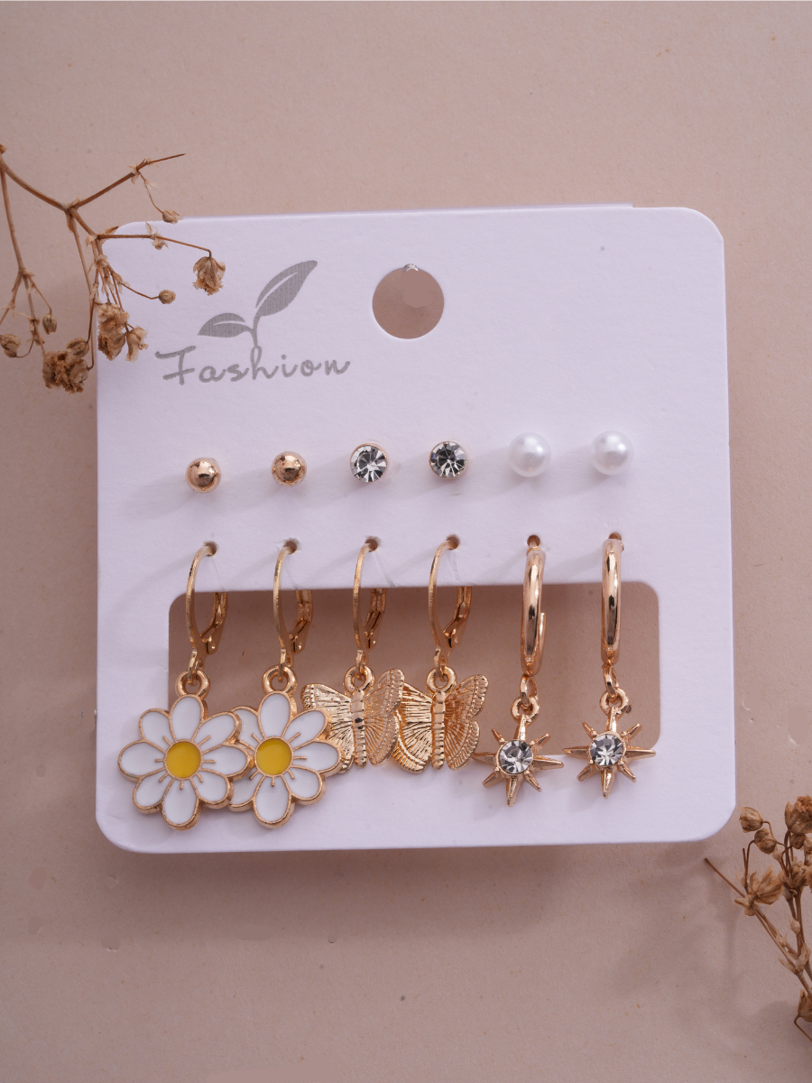 Embrace a burst of sunshine and playful spirit with the Golden Garden 6-Pair Earrings Set. This delightful collection brings together essential studs and charming dangles to suit every mood and occasion. The set includes: