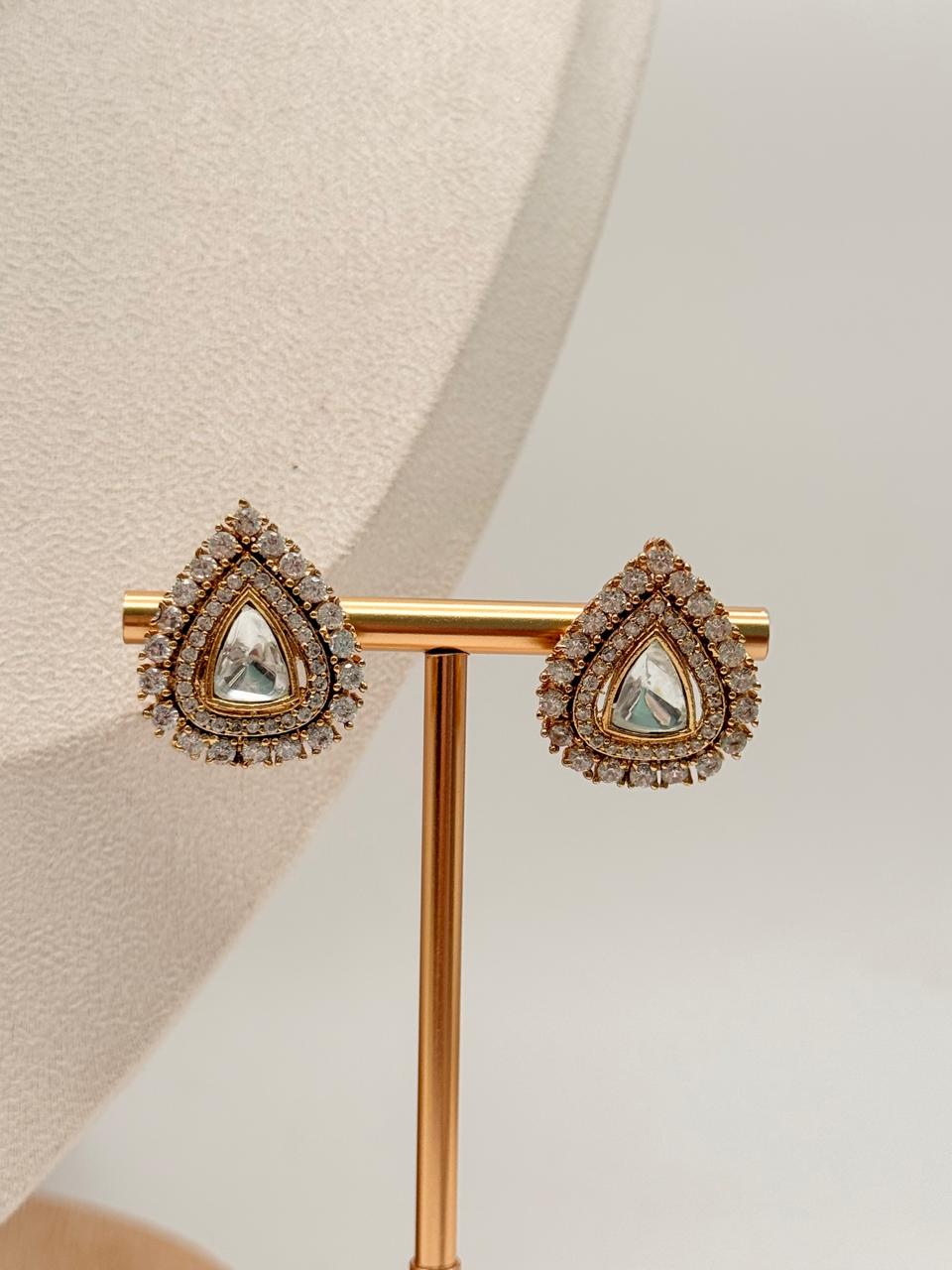 Designed in a rich gold-toned finish, the teardrop motif represents purity, elegance, and effortless sophistication. The matching earrings echo the same droplet silhouette, completing the set with refined harmony.