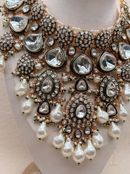 A celebration of timeless grandeur, the Rajnoor Bridal Set reflects the royal essence of Rajputana heritage. Handcrafted with precision and adorned in lustrous kundan and pearls, this masterpiece brings together the perfect harmony of tradition and opulence — designed for the bride who embodies elegance in every glance.